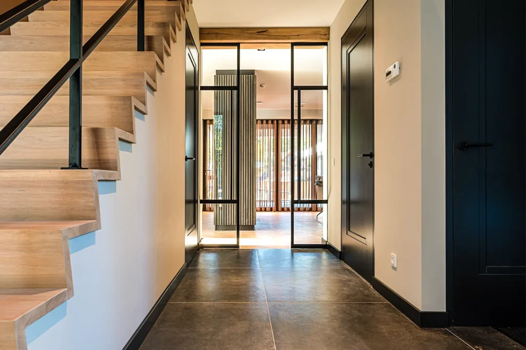 Het geheime wapen van deze deur is het ultra-slanke rail systeem dat zo minimaal mogelijk impact heeft op uw interieur. Soft-close technologie zorgt ervoor dat elke sluiting een zachte, luxe ervaring wordt. Of u nu kiest voor een inbouwsysteem dat volledig verdwijnt in de muur, of voor een stijlvol opbouwsysteem dat een eigen designstatement maakt – beide opties bieden dezelfde betrouwbare functionaliteit.