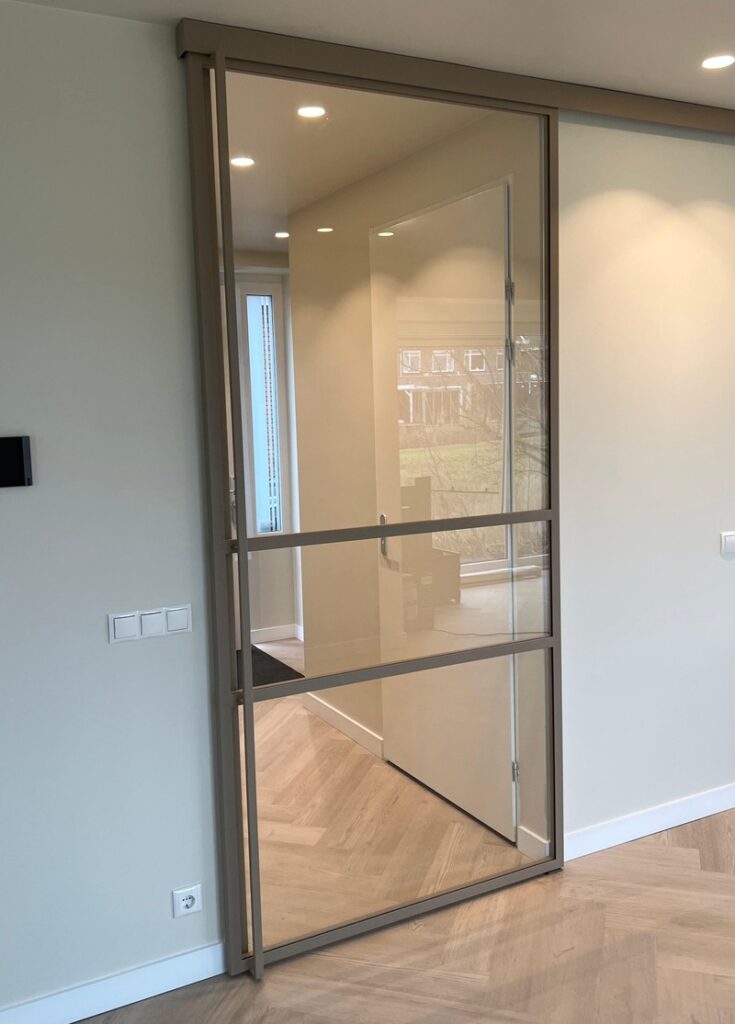 Voor ruimtes waar elke centimeter waarde heeft, biedt onze enkele schuifdeur de perfecte balans tussen functionaliteit en stijl. Door de deur elegant langs de muur te laten glijden, behoudt u alle bruikbare ruimte terwijl u geniet van de pure esthetiek van staal in beweging.