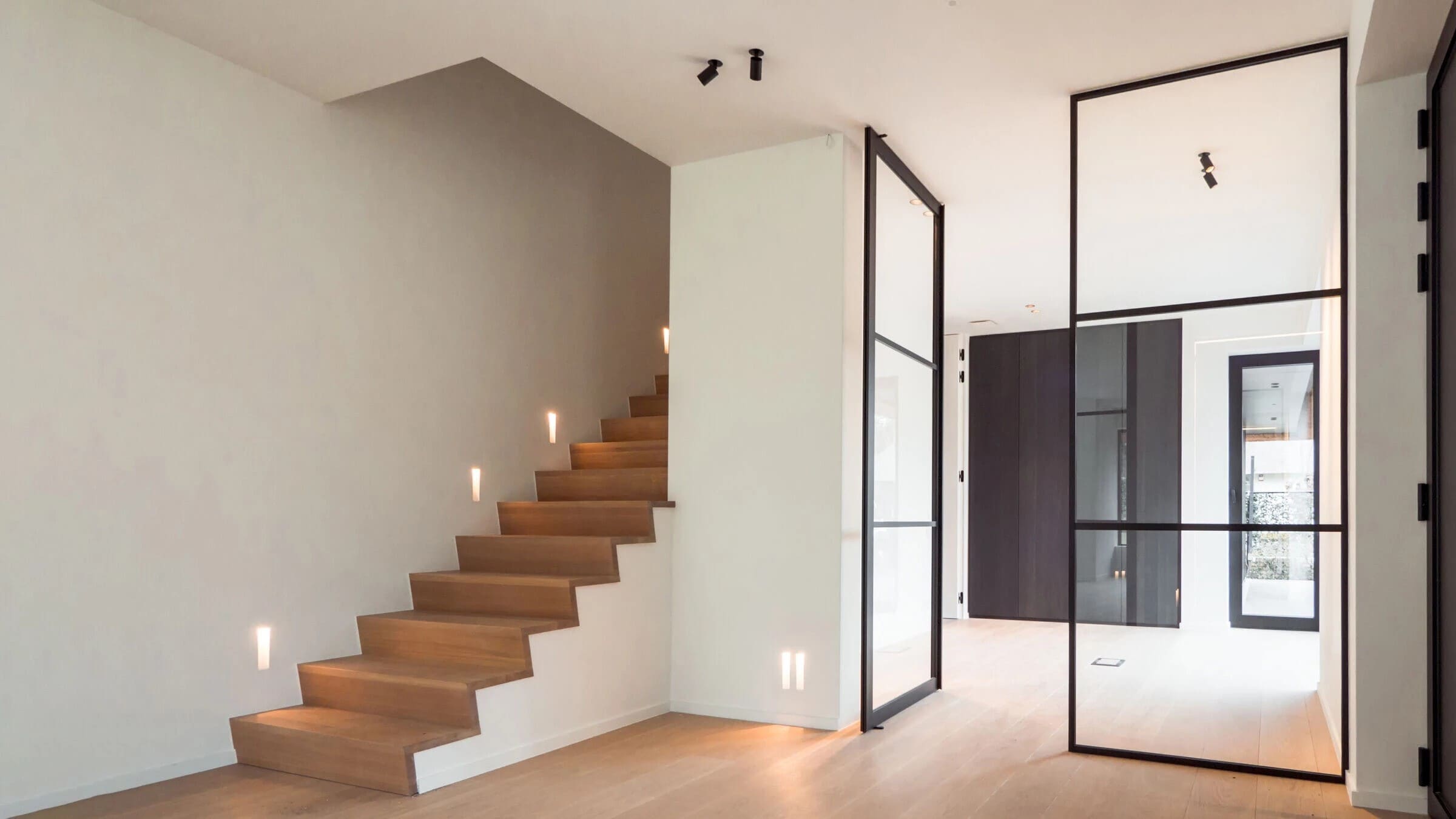 De technische elegantie van het pivot systeem ligt in zijn schijnbare eenvoud. Precision-engineered lagers aan top en bodem dragen het volledige gewicht van de deur, terwijl verstelbare veerwerking zorgt voor perfect gebalanceerde beweging. Dit resulteert in een deur die met minimale kracht te bedienen is, maar maximale impact heeft op uw interieur. Perfect voor ruimtes waar de deur zelf een architectonisch element moet zijn.