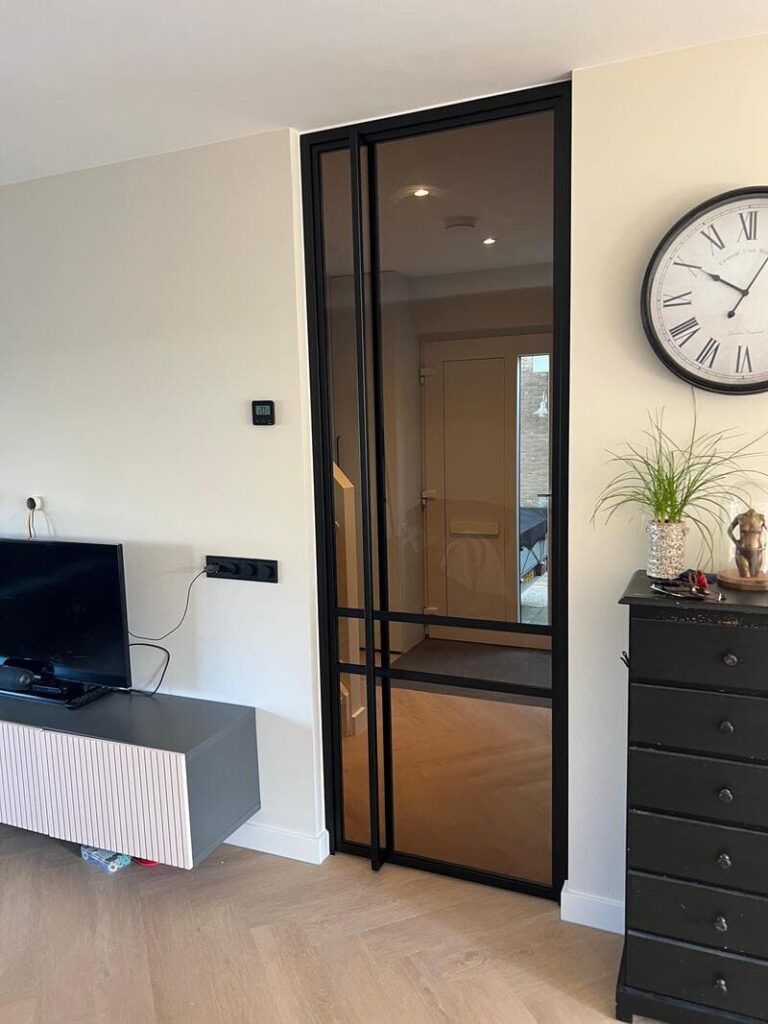Daar waar traditionele deuren draaien rond hun rand, draait onze taatsdeur rond zijn eigen centrum en creëert daarmee een geheel nieuwe manier van ruimte beleven. Het draaipunt aan bovenkant en onderkant zorgt voor een beweging die zowel functioneel als hypnotiserend is – elke opening wordt een moment van bewuste interactie met uw architectuur.